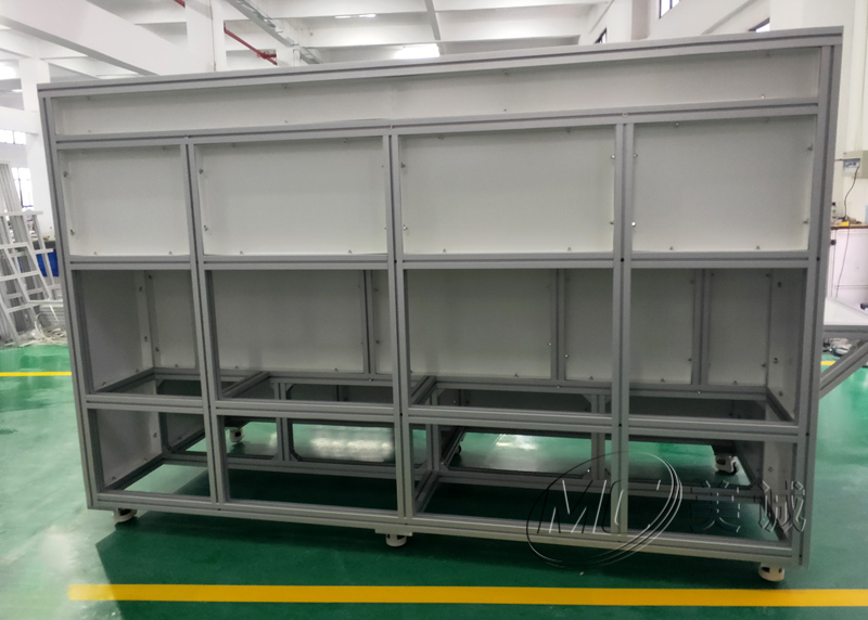 其实3030工业铝型材货架安装很简单,因为所有的常规铝型材定做的框架类产品都有专门的连接件来无缝对接组合式安装。3030工业铝型材货架就是用专用的和30系列铝型材配套使用的配件组装的。比如螺栓螺母、角件、直角支架以及槽条连接件、内置连接件等等都是用30系列的配件,槽口如果是6mm则选择和6mm配套的连接件,槽口是8mm的则选择和8mm配套的连接件。安装货架首先要从框架安装,用连接件将3030铝型材一根根按照图纸组装起来,然后再检查是否牢固,最后再铺上层板即可。这里的层板材料也有很多种,比如PVC板材、亚克力玻璃板、铝合金板材或者是网片网格式层板都可以,按照实际需求来选择即可。
