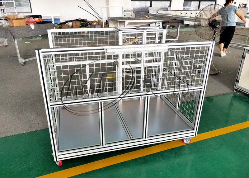 输之用。用铝合金型材定做周转车的主要原因就是其防腐耐磨性能好,使用寿命特别长,不