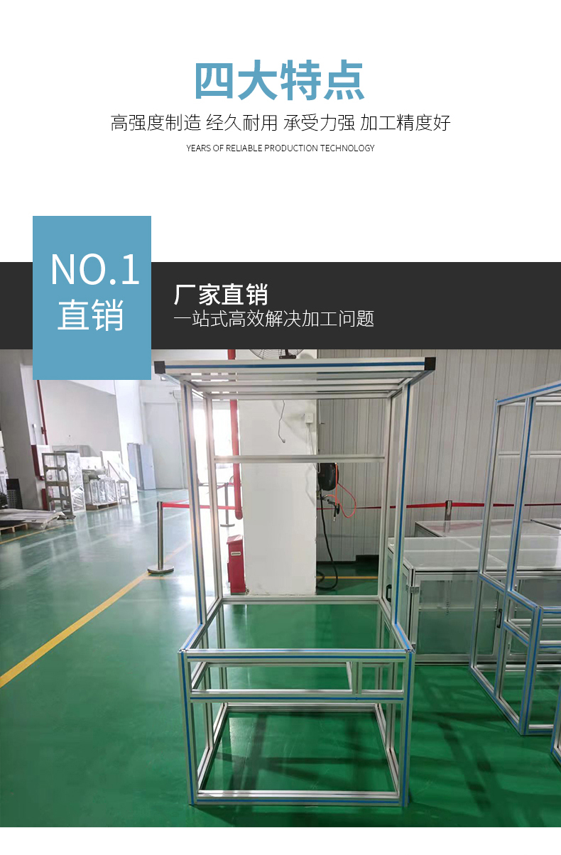 工业铝型材材质100不含废铝,挤压设备先进,技术精良。没有挤压痕,表面阳极氧化膜厚度》12um,外观漂亮、耐脏耐磨、易清洗。