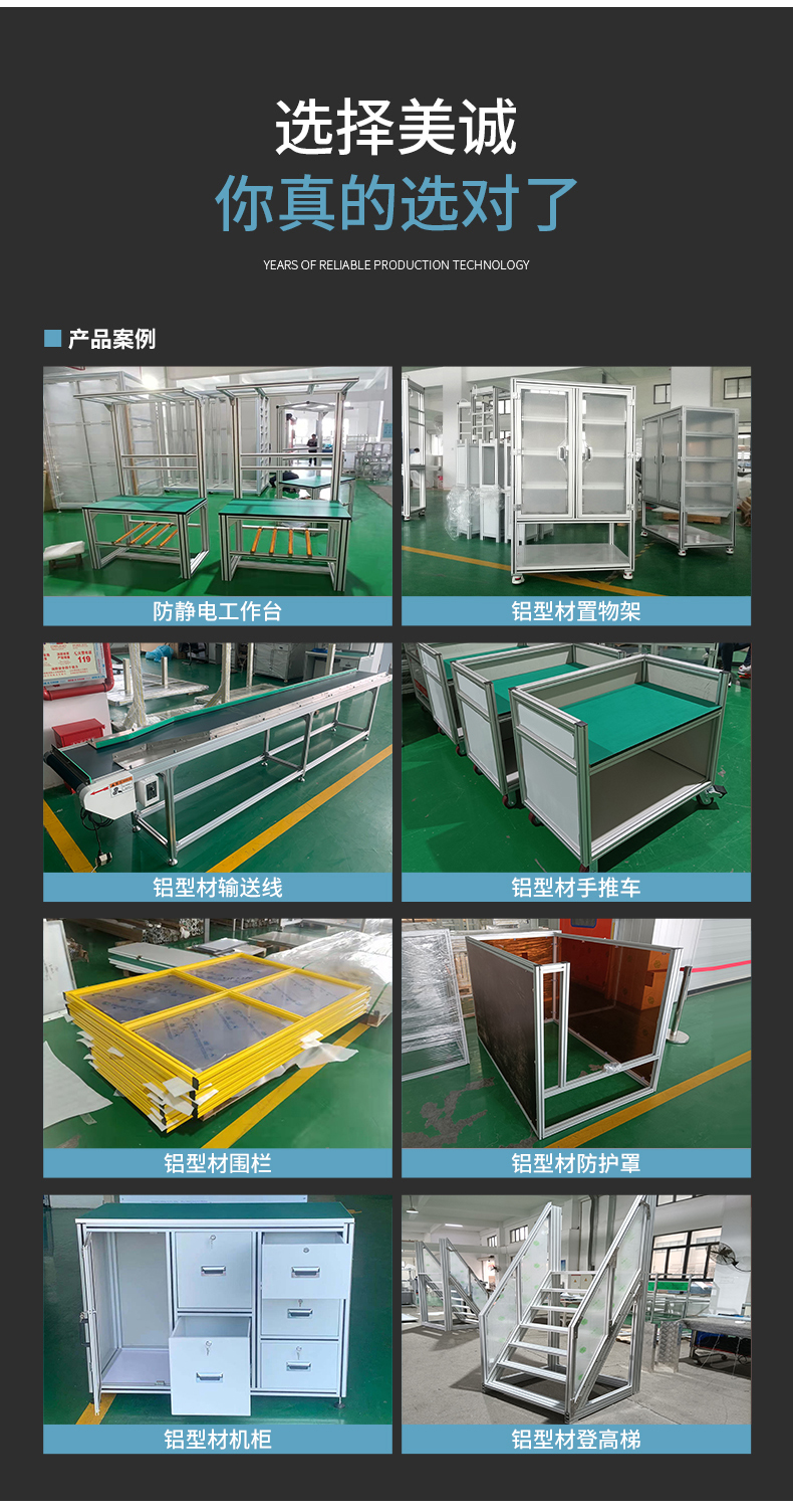广泛应用于自动化行业、汽车制造行业、电子行业及洁净工程和高校科研等领域,配套专用螺栓螺母、强力角件以及相关专用连接件进行组装成品。